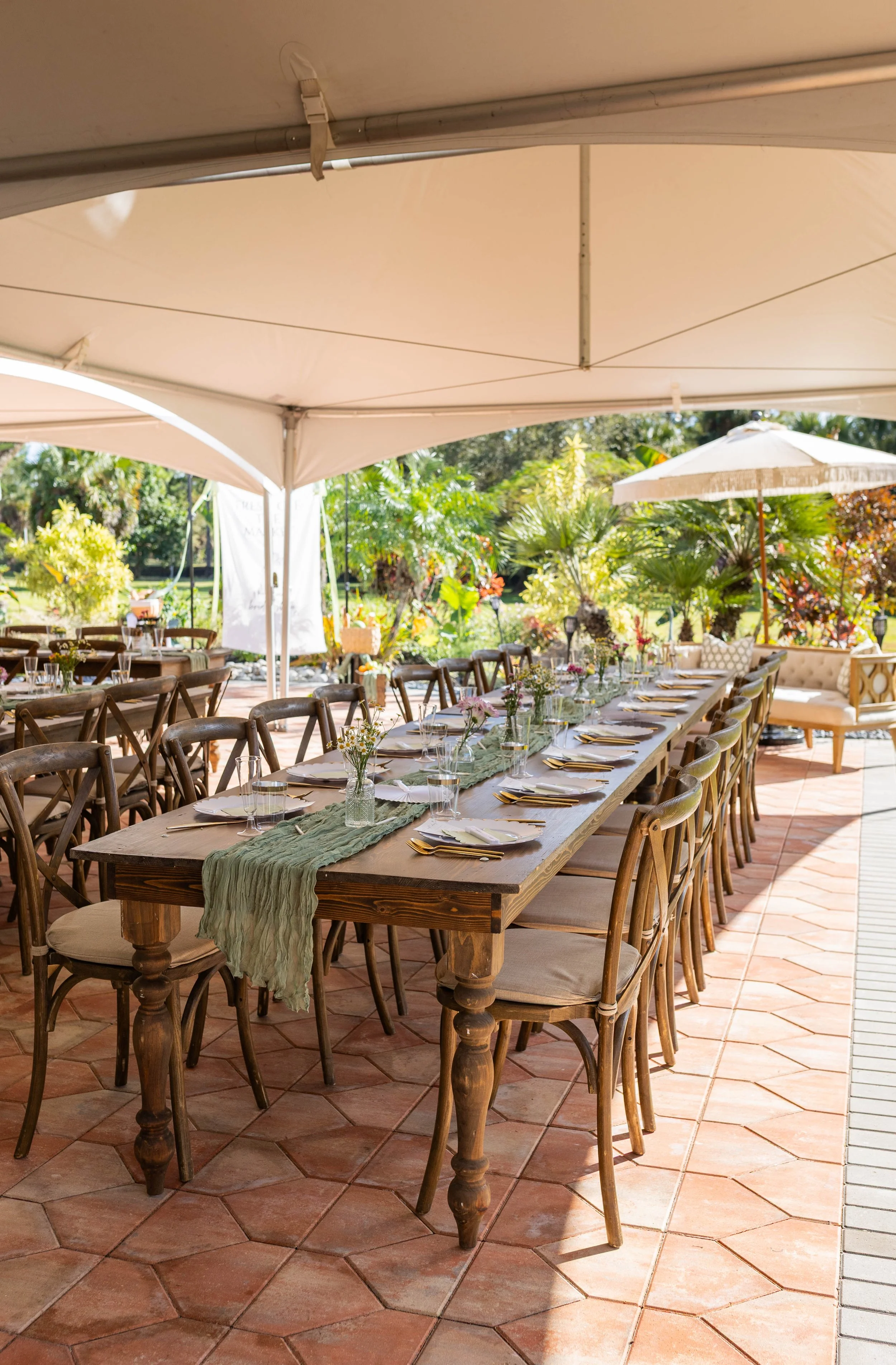 Rustic Event Rentals. Farm tables, cross back chairs & more.